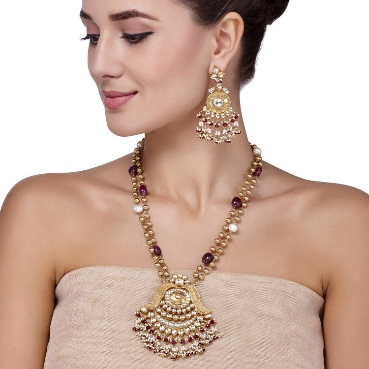 KUNDAN RUBY FAN SET